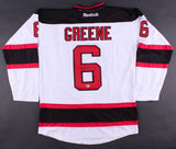 Reebok on-ice style jersey. Everything is sewn on, size 50. Hand signed in black felt tip pen by Andy Greene The autograph includes an official Beckett Authentication Services serially numbered hologram and matching COA for authenticity purposes.Authentication: Beckett COA