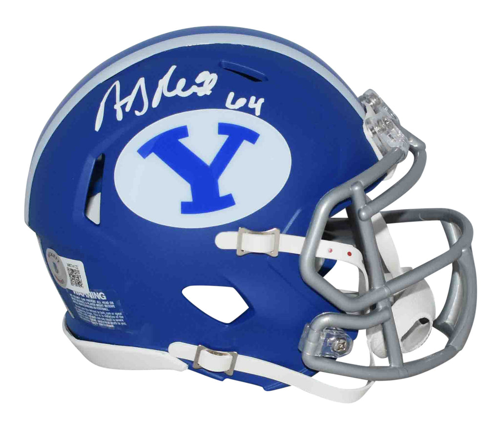 Andy Reid, former offensive lineman for the Cougars and one of the greatest football coaches of all-time, has hand signed this BYU Riddell Speed mini helmet at a private signing. This item is authenticated by Beckett Authentication Services and was signed in the presence of one of their representatives. Their tamper-evident hologram featuring a QR code and serial number is on the item. The authenticity can be verified online by entering the serial number or scanning the QR code.Item pictured may not be the exact item you will receive. It will be similar quality, and we guarantee your satisfaction.
