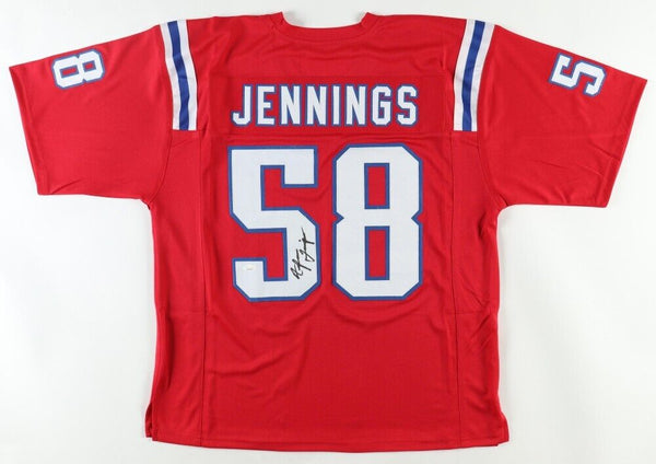 Custom on-field style jersey. Everything is sewn on, size adult XL. Hand-signed by Anfernee Jennings.The lot / autograph(s) includes an official James Spence Authentication (JSA) hologram and matching COA for authenticity purposes. The signing of this item was witnessed by JSA.Authentication: JSA COA