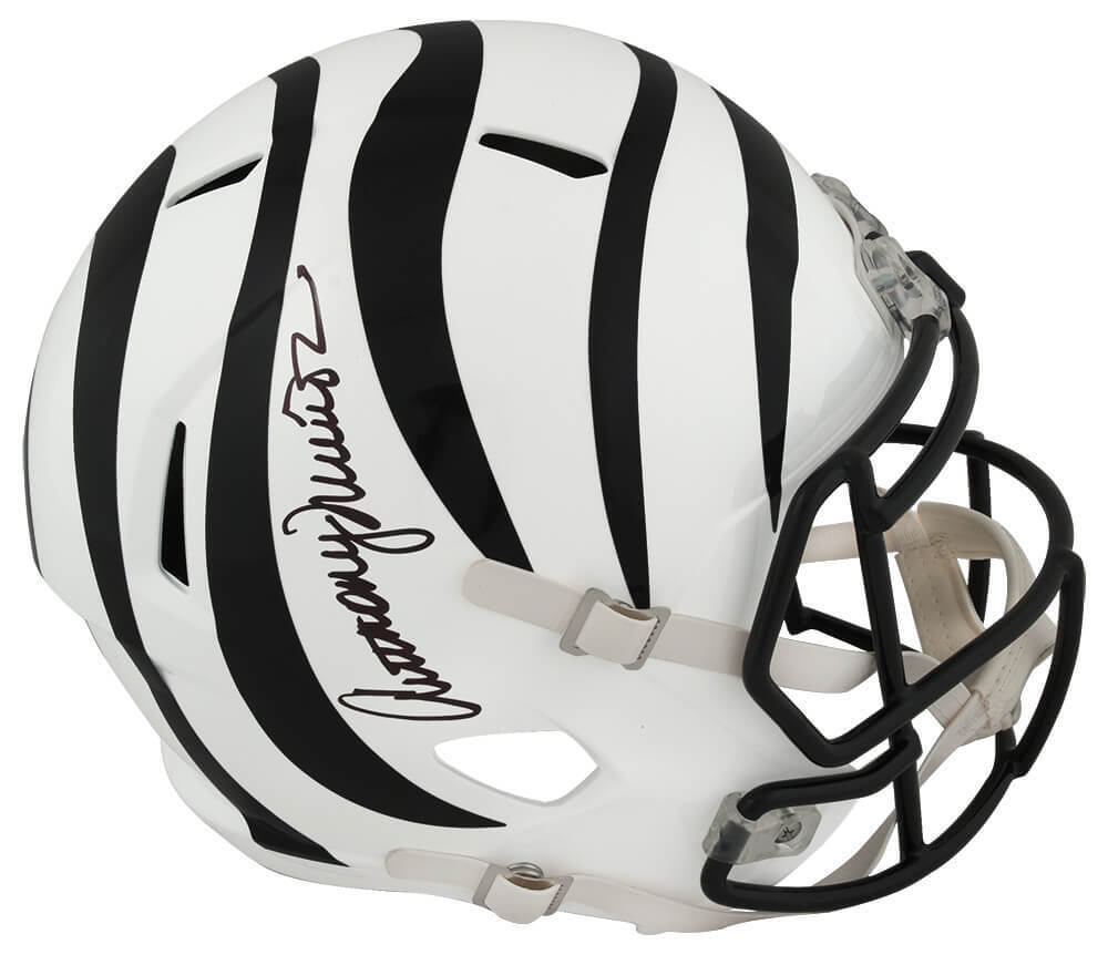 Anthony Munoz signed Cincinnati Bengals white 2023 Alternate Riddell full size speed replica helmet. Item comes with a Schwartz Sports Memorabilia tamper-proof numbered hologram and Certificate of Authenticity which can be verified online.