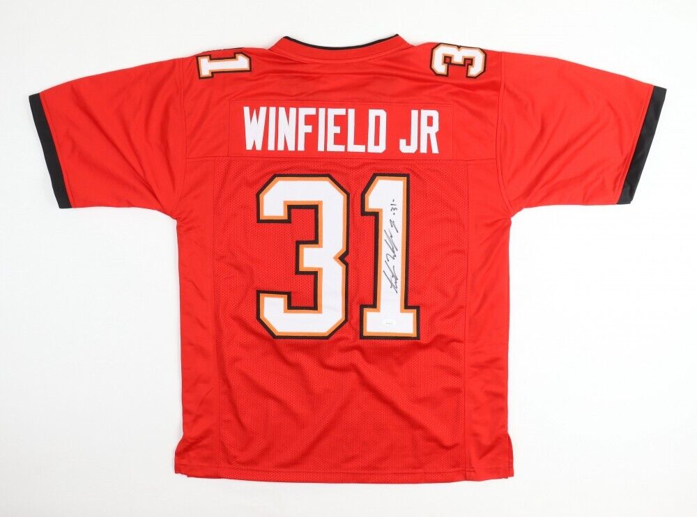Custom on-field style jersey. Everything is sewn on, size XL. Hand-signed by Antoine Winfield Jr.The lot / autograph(s) includes an official James Spence Authentication (JSA) hologram and matching COA for authenticity purposes. The signing of this item was witnessed by JSA.Authentication: JSA COA