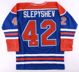Custom on-ice style jersey. Everything is sewn on, size XL. Hand-signed in black felt-tip pen by Anton Slepyshev. The lot / autograph(s) includes an official Beckett Authentication Services serially numbered hologram and matching COA for authenticity purposes.Authentication: Beckett COA
