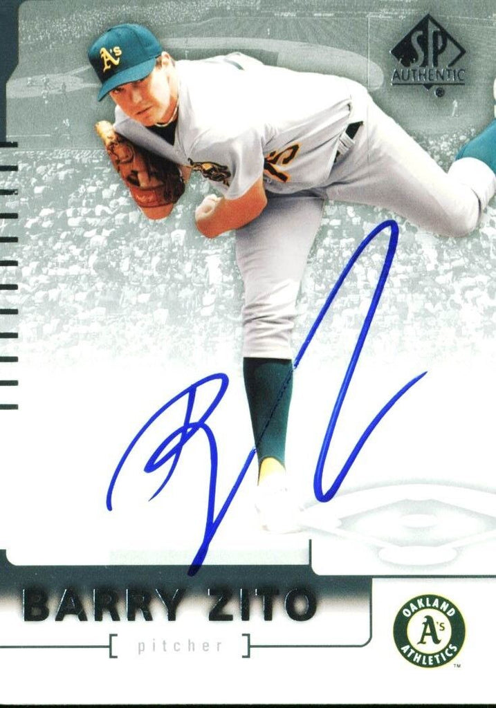This is a 2004 Sp Authentic #20 Authentic Signed Card that has been Personally Signed & Autographed by Barry Zito of the Oakland Athletics. This item is 100% Authentic to include a Certificate of Authenticity (COA) by We.We offers a 100% Lifetime Guarantee on all Autographed & Signed Oakland Athletics Barry Zito memorabilia.