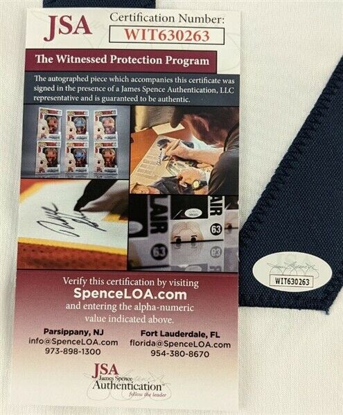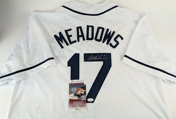 This autographed jersey has been personally hand-signed by Austin Meadows of the Tampa Bay Rays. This autograph is certified by James Spence Authentication's (JSA) Witnessed Protection Program. That means that a JSA representative was present when this item was signed. It comes with the numbered hologram and matching Certificate of Authenticity.Custom on-field style jerseys are a more affordable option for autograph seekers. These jerseys do not have any brand name or tags and are made in the Philippines. They feature stitched on names and numbers and are made to look very similar to the on-field jerseys that the players wear. These custom jerseys are very commonly used in the memorabilia industry.
