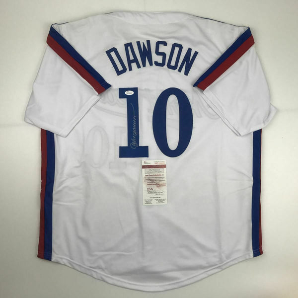 Autographed/Signed ANDRE DAWSON Montreal White Baseball Jersey JSA COA Auto This is a custom jersey and was not manufactured by or in any manner associated with any professional sports league or manufacturer. This custom jersey carries no professional sports league designation. The item is intended to be an autographed collectible. Reference of team in the title is to allow the purchaser a point of association. The custom jersey displays the name, number and authenticated signature of the player. This item in no way is affiliated with or connected to any professional sports organization. The autograph, as always is guaranteed to be authentic and has been certified as authentic by a third-party, trusted authenticator. Size is XL unless otherwise noted.