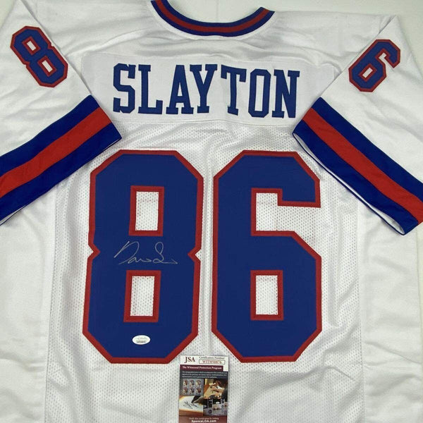 Autographed/Signed DARIUS SLAYTON New York Color Rush Football Jersey JSA COA This is a custom jersey and was not manufactured by or in any manner associated with any professional sports league or manufacturer. This custom jersey carries no professional sports league designation. The item is intended to be an autographed collectible. Reference of team in the title is to allow the purchaser a point of association. The custom jersey displays the name, number and authenticated signature of the player. This item in no way is affiliated with or connected to any professional sports organization. The autograph, as always is guaranteed to be authentic and has been certified as authentic by a third-party, trusted authenticator. Size is XL unless otherwise noted.