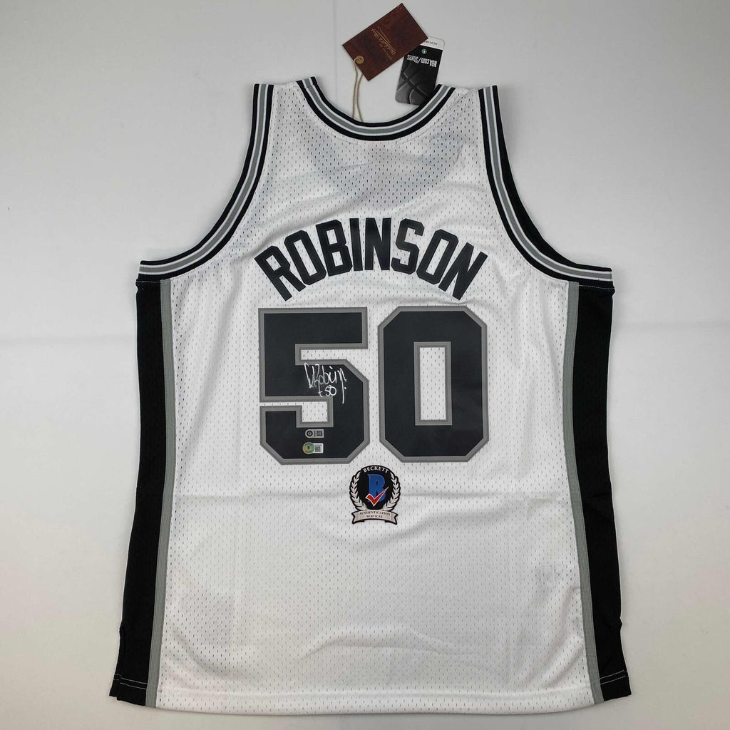 Autographed/Signed David Robinson Spurs White M&N HWC Jersey Beckett BAS COA