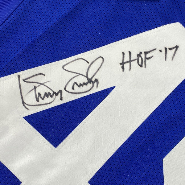 Autographed/Signed Kenny Easley HOF 17 Seattle Blue Football Jersey JSA COA Jersey has no brand names or logos. This is a custom jersey and was not manufactured by or in any manner associated with any professional sports league or manufacturer. This custom jersey carries no professional sports league designation. The item is intended to be an autographed collectible. The custom jersey displays the name and number of the player. This item in no way is affiliated with or connected to any professional sports organization. Size is XL.