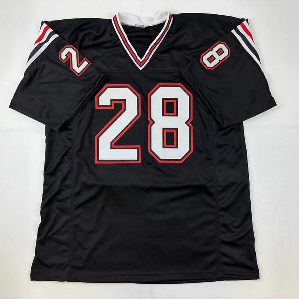 Autographed/Signed Marshall Faulk San Diego State Black Stat Jersey JSA COA Jersey has no brand names or logos. This is a custom jersey and was not manufactured by or in any manner associated with any professional sports league or manufacturer. This custom jersey carries no professional sports league designation. The item is intended to be an autographed collectible. The custom jersey displays the name and number of the player. This item in no way is affiliated with or connected to any professional sports organization. Size is XL.