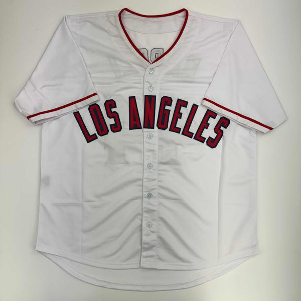 Autographed/Signed Mike Napoli Los Angeles LA Anaheim White Jersey JSA COA Jersey has no brand names or logos. This is a custom jersey and was not manufactured by or in any manner associated with any professional sports league or manufacturer. This custom jersey carries no professional sports league designation. The item is intended to be an autographed collectible. The custom jersey displays the name and number of the player. This item in no way is affiliated with or connected to any professional sports organization. Size is XL.