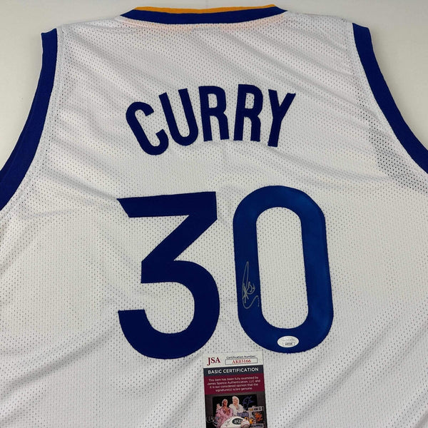 Autographed/Signed Stephen Steph Curry Golden State White Jersey JSA COA Jersey has no brand names or logos. This is a custom jersey and was not manufactured by or in any manner associated with any professional sports league or manufacturer. This custom jersey carries no professional sports league designation. The item is intended to be an autographed collectible. The custom jersey displays the name and number of the player. This item in no way is affiliated with or connected to any professional sports organization. Size is XL.