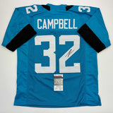 Autographed/Signed Tyson Campbell Jacksonville Teal Football Jersey JSA COA Jersey has no brand names or logos. This is a custom jersey and was not manufactured by or in any manner associated with any professional sports league or manufacturer. This custom jersey carries no professional sports league designation. The item is intended to be an autographed collectible. The custom jersey displays the name and number of the player. This item in no way is affiliated with or connected to any professional sports organization. Size is XL.