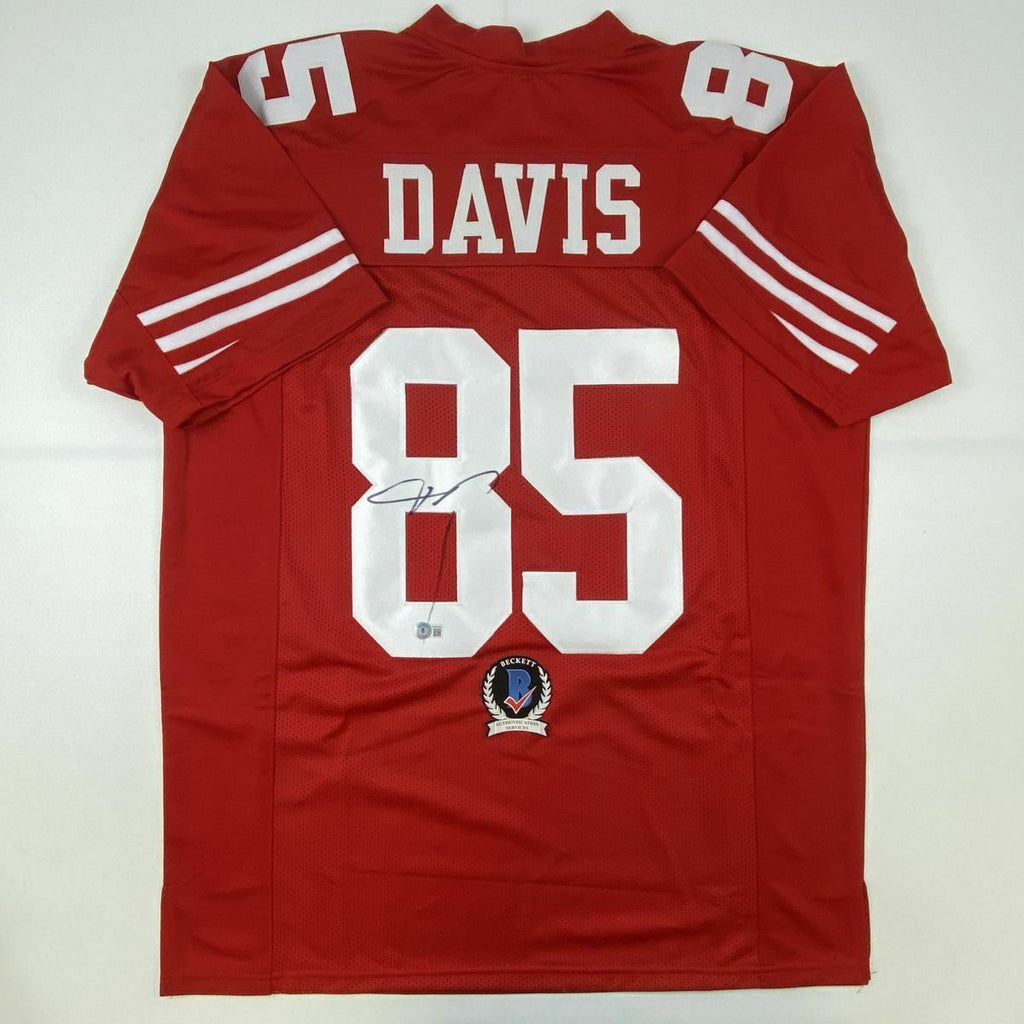 Autographed/Signed VERNON DAVIS San Francisco Red Football Jersey Beckett COA This is a custom jersey and was not manufactured by or in any manner associated with any professional sports league or manufacturer. This custom jersey carries no professional sports league designation. The item is intended to be an autographed collectible. The custom jersey displays the name, number and authenticated signature of the player. This item in no way is affiliated with or connected to any professional sports organization. The autograph, as always is guaranteed to be authentic and has been certified as authentic by a third-party, trusted authenticator. Size is XL unless otherwise noted.