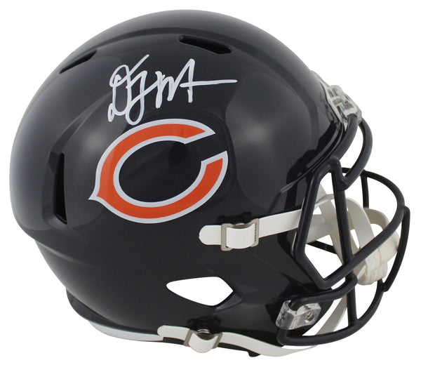 This Autographed Riddell Full Size Speed Rep Helmet has been Personally Signed by D.J. Moore of the Chicago Bears. This item is 100% Authentic to include a hologram by Beckett Authentication Services. This item may come with the new Beckett Authentication hologram that has a scannable QR code rather than the traditional COA. If you would like to have a COA, you are welcome to reach out to Beckett for a printed certification once you receive your item. This is a BAS Witnessed Protection Program item which means a Beckett Authentication Service representative was present when this item was being signed. We conducted an autograph signing with D.J. Moore where multiples of the same item were signed. While the photographs are representative of this item, the size, placement and strength of the signature may vary. Each item is hand signed, therefore, each autograph is unique. This item can be verified through BAS Witnessed.