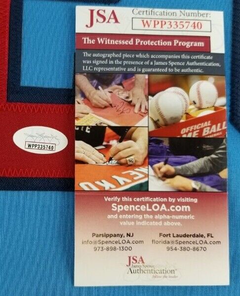 Custom on-field style jersey. Everything is sewn on, size XL. Has been hand-signed in silver paint pen by Bert Blyleven (HOF). The lot / autograph(s) includes an official James Spence Authentication (JSA) hologram and matching COA for authenticity purposes. The signing of this item was witnessed by JSA.Authentication: JSA COA