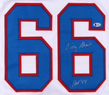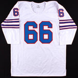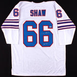 Custom on-field style jersey. Everything is sewn on, size XL. Hand-signed in silver paint pen by Billy Shaw (HOF). The lot / autograph(s) includes an official Beckett Authentication Services serially numbered hologram and matching COA for authenticity purposes. The signing of this item was witnessed by BeckettAuthentication: Beckett COA
