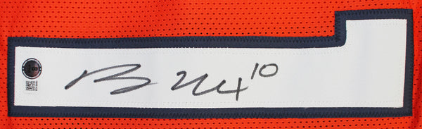 This Autographed Orange Pro Style Jersey has been Personally Signed by Bo Nix of the Denver Broncos. This item is 100% Authentic to include a hologram by Beckett Authentication Services. This item will come with an affixed Beckett Authentication Services (BAS) authentication sticker, which includes a scannable QR code to verify authenticity. Please note that Beckett no longer provides serial-numbered COA cards, and the attached BAS sticker will serve as the complete authentication for this item. This is a BAS Witnessed Protection Program item which means a Beckett Authentication Service representative was present when this item was being signed. We conducted an autograph signing with Bo Nix where multiples of the same item were signed. While the photographs are representative of this item, the size, placement and strength of the signature may vary. Each item is hand signed, therefore, each autograph is unique. This item can be verified through BAS Witnessed. This is a X-Large sized, non-branded, custom-stitched Jersey.