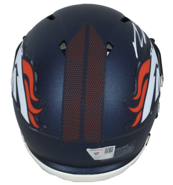 Bo Nix Autographed Denver Broncos Mini Speed Helmet FanaticsThis mini helmet has been personally hand-signed by Bo Nix. It is officially licensed by the National Football League and comes with an individually numbered, tamper-evident hologram from Fanatics Authentic. To ensure authenticity, the hologram can be reviewed online. This process helps to ensure that the product purchased is authentic and eliminates any possibility of duplication or fraud.The autograph includes an official Fanatics hologram and matching COA for authenticity purposes.Comes with a tamper-evident hologram from Fanatics AuthenticatedOfficially licensed by the NFL MONEY BACK GUARANTEE! If for any reason you are not completely satisfied with the quality or authenticity of your purchase, we will gladly give you a full refund or exchange, whichever you prefer up to 30 days after purchase. Please feel free to e-mail us with any questions. Thank you. Authenticator Pre-Certified Authenticator: Fanatics Authenticated History of item: Bo Nix has signed this item in the presence of a representative from Fanatics. Describe how you came to possess this item: Super Sports Center is a fully authorized dealer for Upper Deck Authenticated as well as Mounted Memories and Steiner Sports. Other information about you and / or the item: Super Sports Center strives to deliver the most authentic in sports memorabilia from trusted companies like Mounted Memories, Steiner Sports and Upper Deck Authenticated. If it exists, we can find it for you!