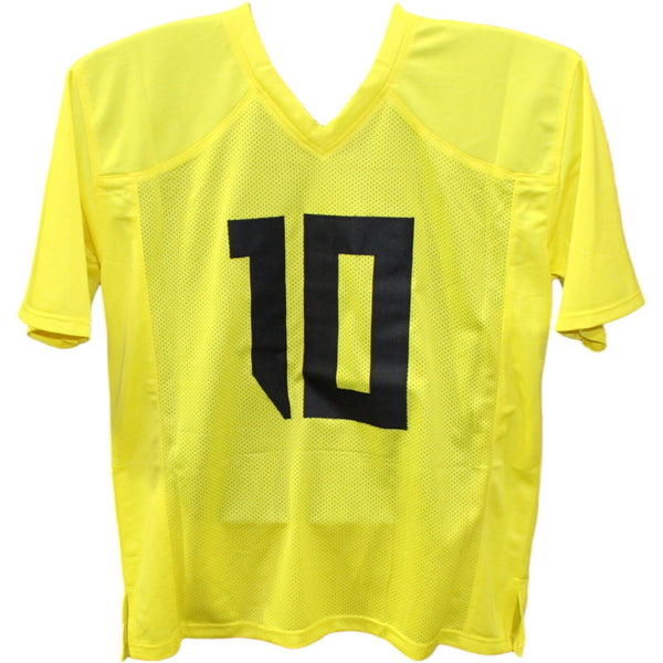 Bo Nix Autographed/Signed College Style Yellow Jersey Beckett 43509 The number in the listing title is just an inventory sku for our records and is not the authentication number. The item pictured is a stock photo unless otherwise noted. This is a College Style Yellow Jersey that was personally autographed by Bo Nix. Includes a certificate of authenticity from Beckett Authentication Services (BAS) and Denver Autographs.