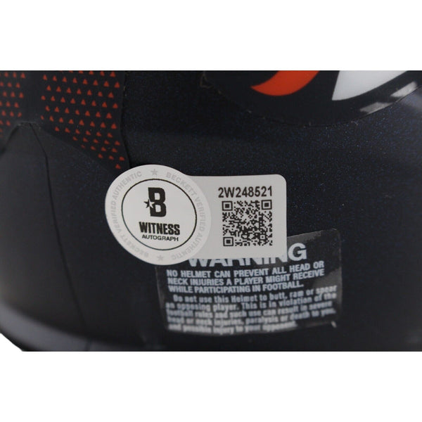 The number in the listing title is just an inventory sku for our records and is not the authentication number. The item pictured is a stock photo unless otherwise noted. This is a Denver Broncos 2024 Speed Mini Helmet that was personally autographed by Bo Nix. Includes a certificate of authenticity from Beckett Authentication Services (BAS) and Denver Autographs.