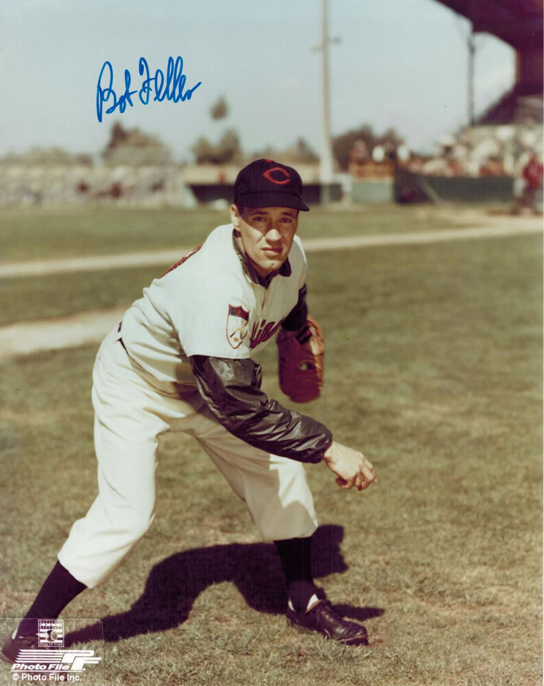 Bob Feller Signed Indians pitching 8x10 photo. Item comes with a Schwartz Sports Memorabilia tamper-proof numbered hologram and Certificate of Authenticity which can be verified online.