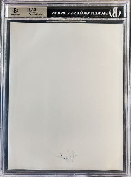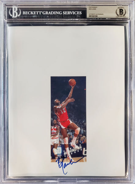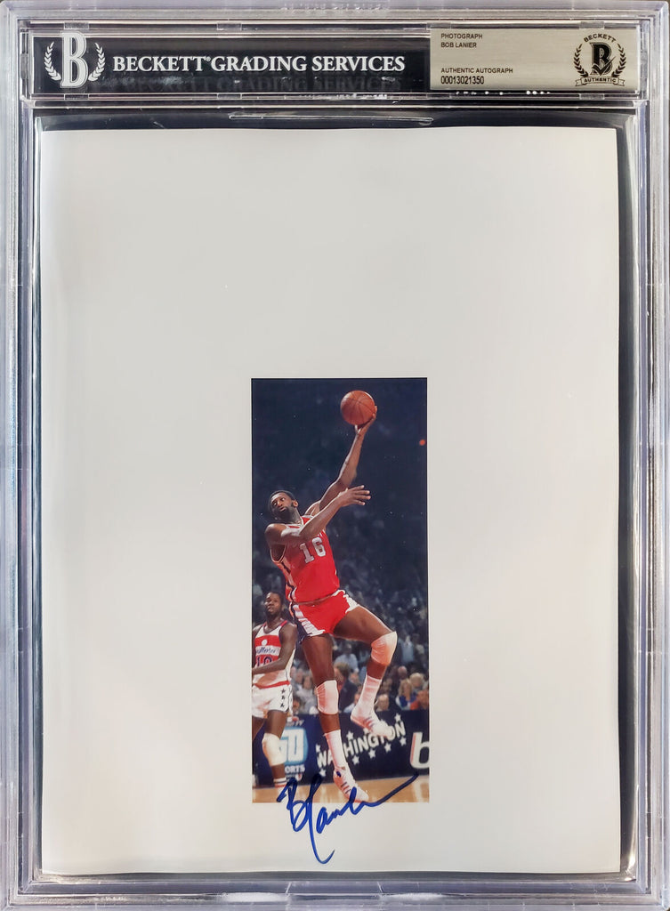 This is an 8.5x11 Photo Sheet that has been hand signed by Bob Lanier. Please note, the size of the photo sheet measures at approximately 8.5x11, but the size of the colored picture in the photo sheet is smaller. It has been certified authentic by Beckett Authentication Services (BAS) and comes encapsulated in their tamper-proof holder.
