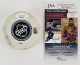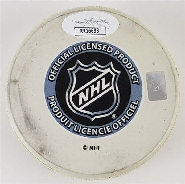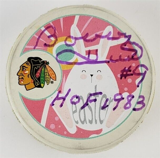 This autographed puck has been personally hand-signed by Bobby Hull ("HOF 1983" inscription) of the Chicago Blackhawks. This autograph is certified by James Spence Authentication (JSA). It comes with the numbered hologram and matching Certificate of Authenticity.