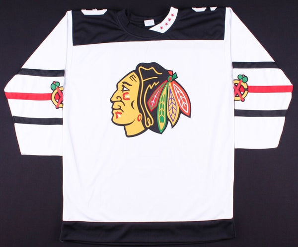 Custom on-ice style jersey. Everything sewn on, size XL. Hand-signed and inscribed in silver paint pen by Bobby Hull (Blackhawks HOF). The autograph includes an official James Spence Authentication (JSA) hologram and matching COA for authenticity purposes. The signing of this item was witnessed by JSA.Authentication: JSA COA