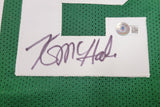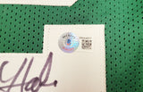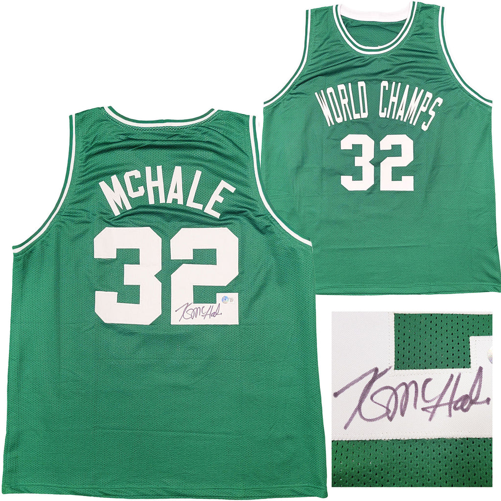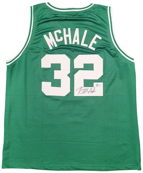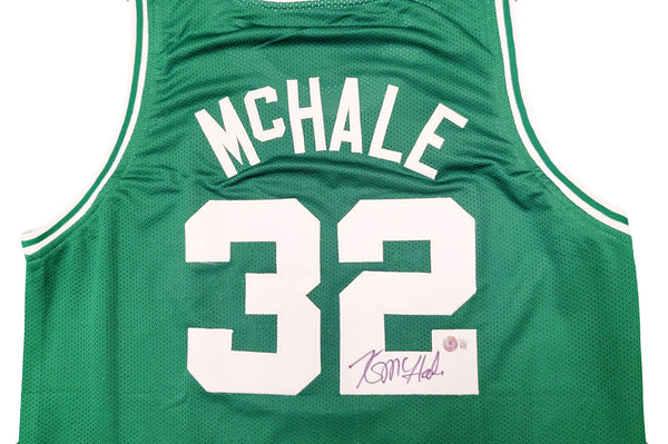 This is a Green Jersey that has been hand signed by Kevin McHale. This is a custom jersey with no name brand. The approximate size is XL. It has nice sewn in name and numbers. This item has been witnessed and certified authentic by Beckett Authentication (BAS) and comes with their tamper-proof witness sticker. Beckett Authentication has recently changed their physical certificate card policy where they no longer match their tamper-proof sticker with a physical certificate. A certificate can be printed on Beckett's website for the matching authentication number.