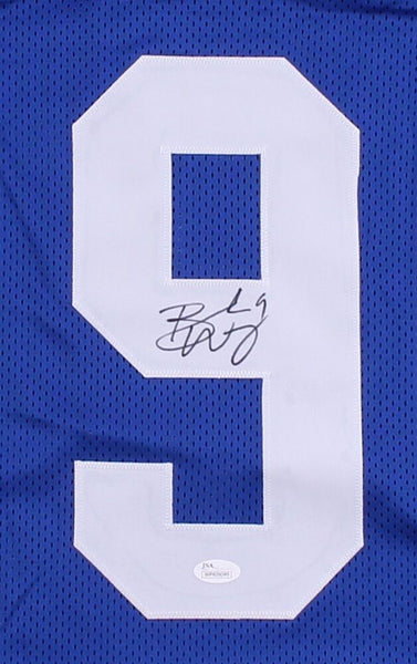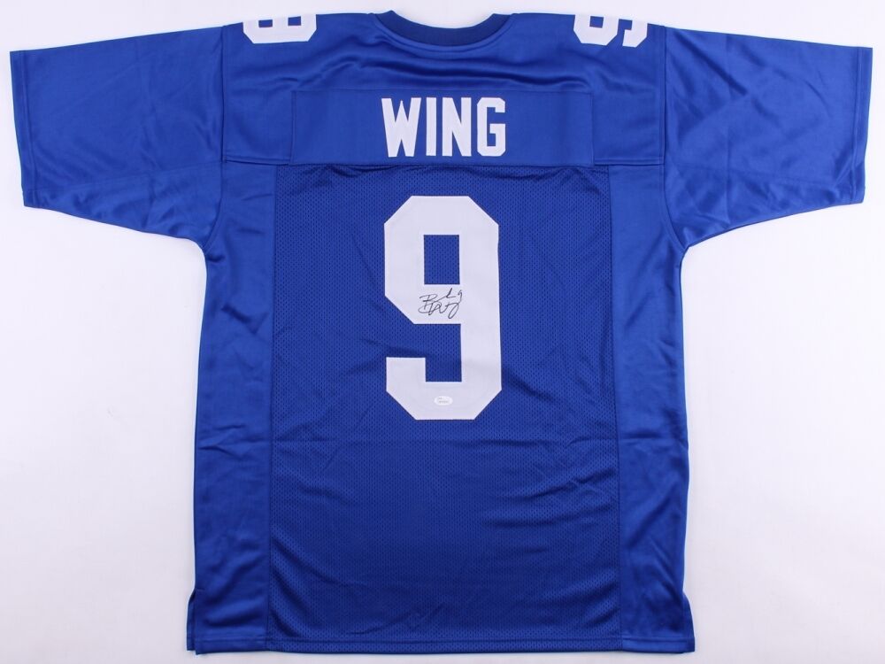Custom on-field style jersey. Everything sewn on, size XL. Hand-signed in black felt tip pen by Brad Wing (Eagles, Giants). The autograph includes an official James Spence Authentication (JSA) hologram and matching COA for authenticity purposes. The signing of this item was witnessed by JSA.Authentication: JSA COA