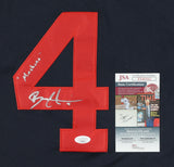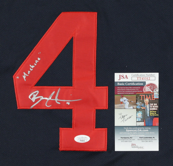 Custom on-field style jersey. Everything is sewn on, size L. Hand-signed and inscribed by Bradley Zimmer (Cleveland Indians).The lot / autograph(s) includes an official James Spence Authentication (JSA) hologram and matching COA for authenticity purposes.Authentication: JSA COA
