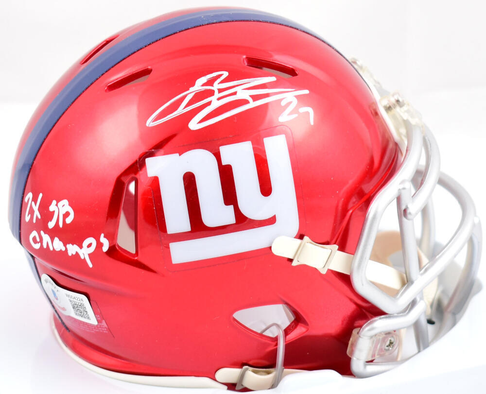 Brandon Jacobs Autographed New York Giants Flash Speed Mini Helmet w/SB Champs- Beckett W Hologram *White This is a hand autographed Flash Speed Mini Helmet of Brandon Jacobs of the New York Giants. Inscribed 2x SB Champs. This item has a Beckett Witnessed Authentication, which comes with a Beckett numbered sticker hologram and a QR code for verification. You can view this item on the Beckett website and it shows when and where the item was signed. It was signed either at a public autograph appearance or a private signing. This is a stock photo of the item. Although you may not receive this exact item, the item you receive is virtually identical and brand new in great shape.