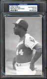 This Autographed 3.5x5.5 Postcard with the inscription of "Best Wishes" has been Personally Signed by Hank Aaron of the Milwaukee Braves. This item is 100% Authentic, it comes slabbed and authenticated by PSA/DNA. The authenticity can be verified on Professional Sports Authenticator website.