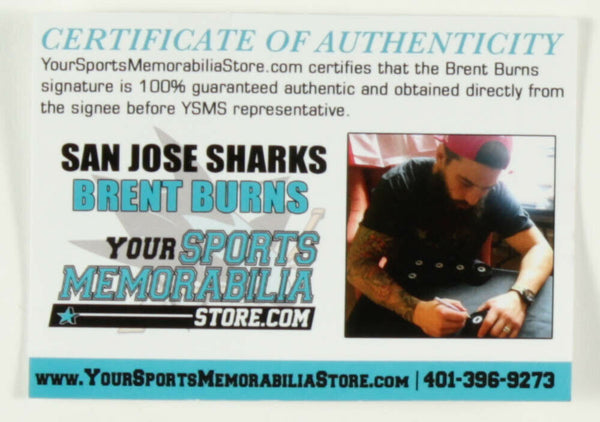 Custom on-ice style jersey. Everything sewn on, size XL. Hand-signed by Brent Burns.The lot / autograph(s) includes an official Your Sports Memorabilia Store Brent Burns hologram and matching COA for authenticity purposes.Authentication: Burns COA