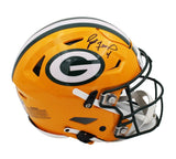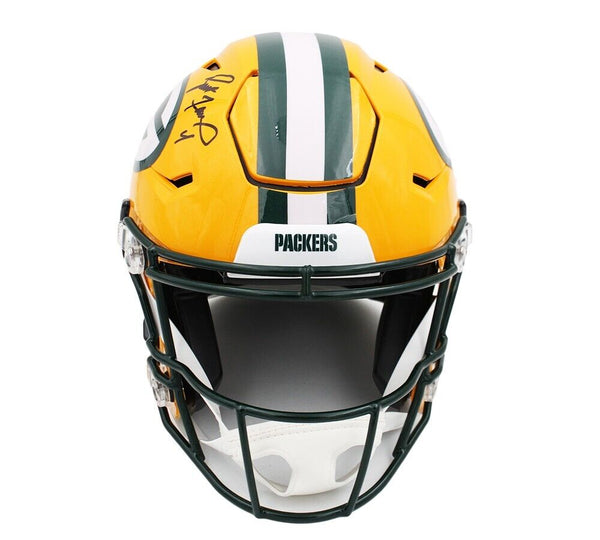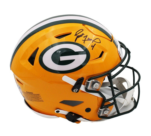A Green Bay Packers Speed Flex Authentic NFL Helmet hand signed by Brett Favre. The item and signature are in excellent condition. Brett is one of the most iconic players in NFL history. A 20 year veteran of the NFL, Brett is a Super Bowl Champion, 11x Pro Bowler, 3x AP NFL Most Valuable Player, 4x NFL passing touchdowns leader, and 2x passing yards leader. His number, 4, has been retired by both the Green Bay Packers and the Southern Miss Golden Eagles. Brett was inducted into the Pro Football Hall of Fame in 2016. AUTHENTICATION: Your item has been tagged with a Brett Favre Exclusive SmarTag powered by Prova Technology, which gives you digital access to your items authentication records, including a proof picture from the signing.