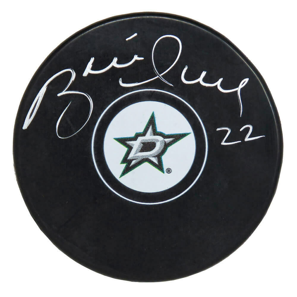 Brett Hull signed Dallas Stars logo hockey puck. Item comes with a Schwartz Sports Memorabilia tamper-proof numbered hologram and Certificate of Authenticity which can be verified online.