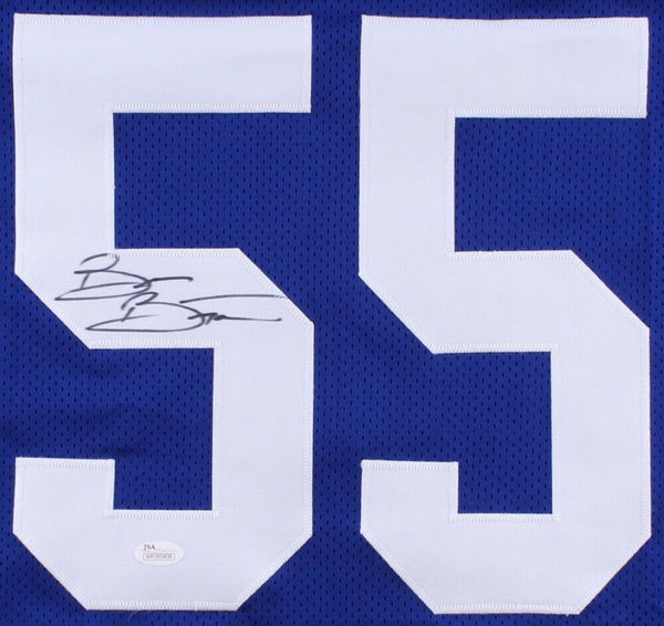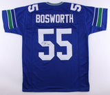 Custom on-field style jersey. Everything sewn on, size XL . Hand-signed by Brian Bosworth (Seahawks). Bosworth played college football for the University of Oklahoma, and was a two-time consensus All-American. He gained fame and notoriety through his flamboyant personality, controversial comments about the National Collegiate Athletic Association (NCAA) and radical hair cuts. The lot / autograph(s) includes an official James Spence Authentication (JSA) hologram and matching COA for authenticity purposes. The signing of this item was witnessed by JSA.Authentication: JSA COA