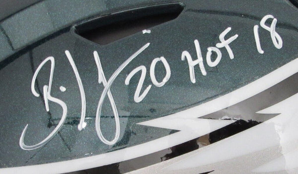 Brian dawkins autographed/inscribed "hof 18" green full size speed flex authentic football helmet philadelphia eagles. this helmet is authenticated by bas/beckett and includes their tamper-proof sticker.
