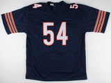 Custom on-field style jersey. Everything is sewn on, size XL. Hand-signed in black felt-tip pen by Brian Urlacher (HOF). The lot / autograph(s) includes an official Beckett Authentication Services serially numbered hologram and matching COA for authenticity purposes.Authentication: Beckett COA