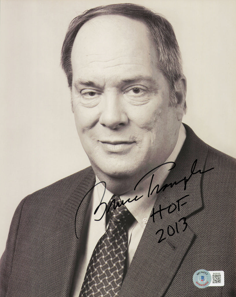 This is an 8x10 Photo that has been hand signed by Bruce Trampler. This item was inscribed "HOF 2013." This item has been certified authentic by Beckett Authentication (BAS) and comes with their tamper-proof QR Code hologram that can be verified on the Beckett-authentication.com.