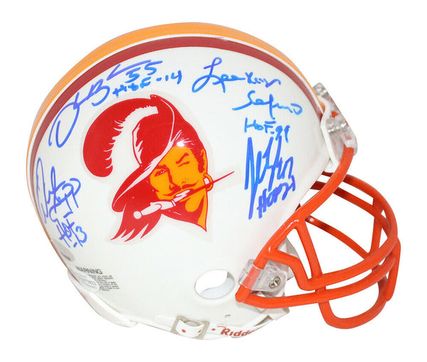 Buccaneers HOF Signed TB Mini Helmet Selmon Sapp Brooks Lynch BAS 20972 The number in the listing title is just an inventory sku for our records and is not the authentication number. This is a Tampa Bay Buccaneers throwback mini helmet that was personally autographed by Lee Roy Selmon, John Lynch, Derrick Brooks and Warren Sapp. Includes a certificate of authenticity from Beckett Authentication Services (BAS) and Denver Autographs.