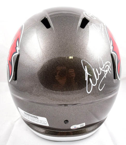 Sapp, Jackson, Johnson, Alstott, Brooks, Barber Signed Buccaneers F/S 97-13 Speed Helmet-Beckett W Hologram *White This is a Warren Sapp, Dexter Jackson, Brad Johnson, Mike Alstott, Derrick Brooks, and Ronde Barber of the Tampa Bay Buccaneers hand autographed Riddell football 97-13 full size Speed Replica helmet. This item has a Beckett Witnessed Authentication, which comes with a numbered sticker hologram and a QR code for verification. You can view this item on the Beckett Authentication website, it shows when and where the item was signed. It was signed either at a public autograph appearance or a private signing. This is a stock photo of the item. Although you may not receive this exact item, the item you receive is virtually identical, brand new, and in great shape.