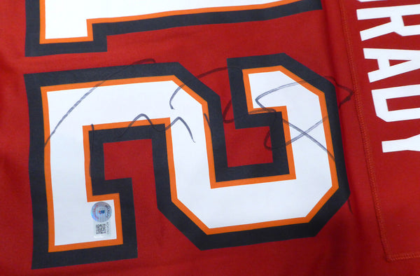 This is a Red Nike SB Patch Tampa Bay Buccaneers Jersey that has been hand signed by Tom Brady. This item has been certified authentic by Beckett Authentication (BAS) and comes with their tamper-proof QR Code sticker and matching full page certificate of authenticity.