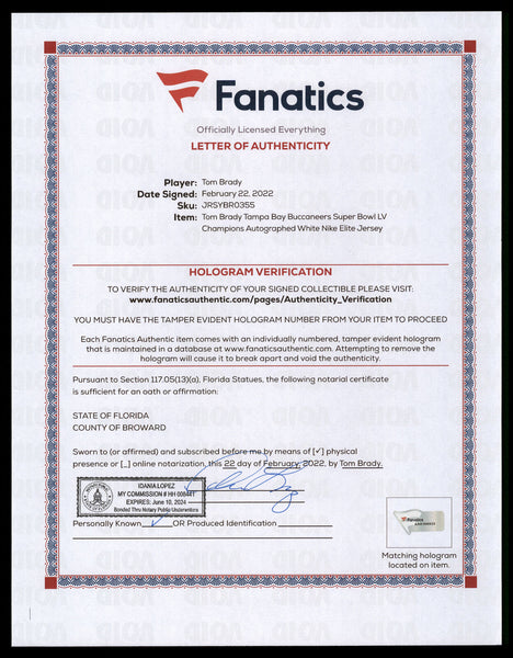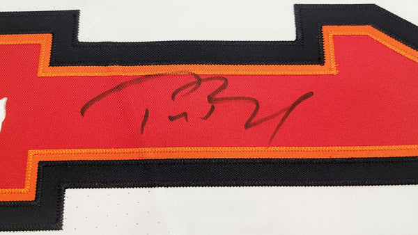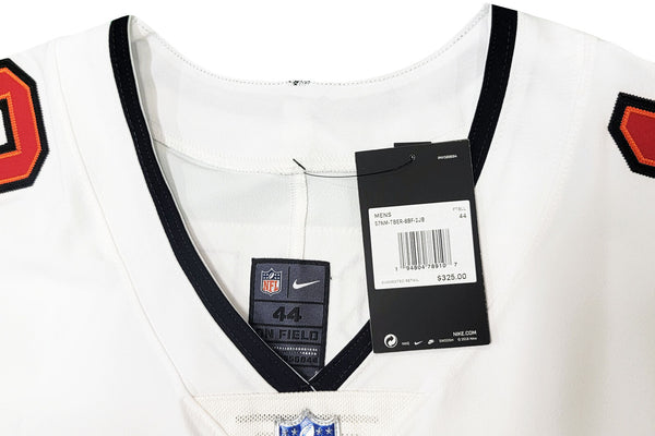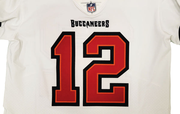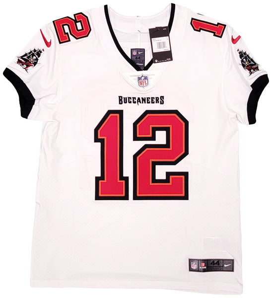This is a White Nike Tampa Bay Buccaneers Elite Jersey that has been hand signed by Tom Brady. This jersey is Size 44. This item has been certified authentic by Fanatics and comes with their full page certificate and tamper-proof sticker.