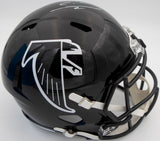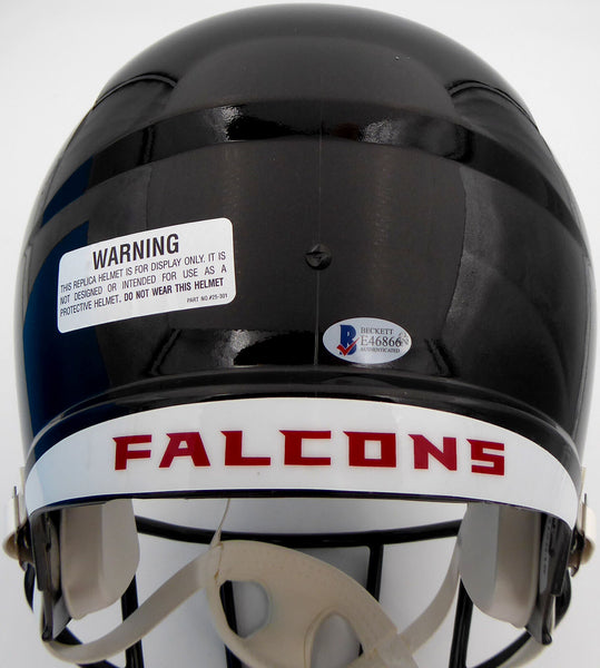 This is an Atlanta Falcons Full Size Speed Replica Helmet that has been hand signed by Calvin Ridley. This item has been certified authentic by Beckett Authentication (BAS) and comes with their tamper-proof sticker and matching certificate that can be verified on the Beckett-authentication.com.A NOTE: There is a smudge in the autograph, as shown in the pictures.