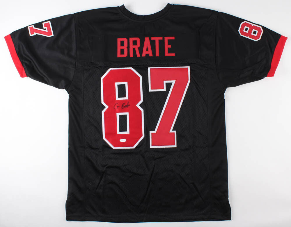 Custom on-field style jersey. Everything is sewn on, size XL. Hand-signed in black felt-tip pen by Cameron Brate. The lot / autograph(s) includes an official James Spence Authentication (JSA) hologram and matching COA for authenticity purposes. The signing of this item was witnessed by JSA.Authentication: JSA COA