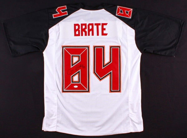 Custom on-field style jersey. Everything is sewn on, size XL. Hand-signed in black felt-tip pen by Cameron Brate. The lot / autograph(s) includes an official James Spence Authentication (JSA) hologram and matching COA for authenticity purposes. The signing of this item was witnessed by JSA.Authentication: JSA COA