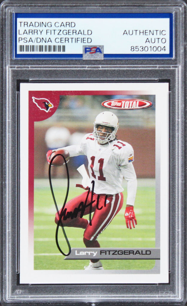This Autographed 2005 Topps Total #TC1 Card has been Personally Signed by Larry Fitzgerald of the Arizona Cardinals. This item is 100% Authentic, it comes slabbed and authenticated by PSA/DNA. The authenticity can be verified on Professional Sports Authenticator website.