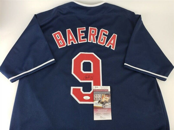 This autographed jersey has been personally hand-signed by Carlos Baerga of the Cleveland Indians. This autograph is certified by James Spence Authentication's (JSA) Witnessed Protection Program. That means that a JSA representative was present when this item was signed. It comes with the numbered hologram and matching Certificate of Authenticity.Custom on-field style jerseys are a more affordable option for autograph seekers. These jerseys do not have any brand name or tags and are made in the Philippines. They feature stitched on names and numbers and are made to look very similar to the on-field jerseys that the players wear. These custom jerseys are very commonly used in the memorabilia industry.