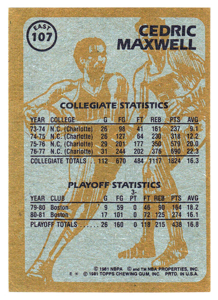 Cedric Maxwell signed Boston Celtics 1981-82 Topps basketball trading card #107. Item comes with a Schwartz Sports Memorabilia tamper-proof numbered hologram (on back of physical card) and Certificate of Authenticity which can be verified online.